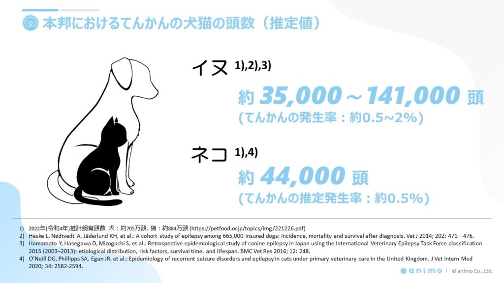 獣医療において、てんかんの犬猫は凡そ20万頭ほど(推定値)いると言われています。てんかん治療においては、オーナーの日常の記録がどれだけ正確に取得されているかが適切な診断や治療のために重要な要素となるとともに、それらの情報を適切にかかりつけ医や専門医に連携する仕組み作りが必要となります。