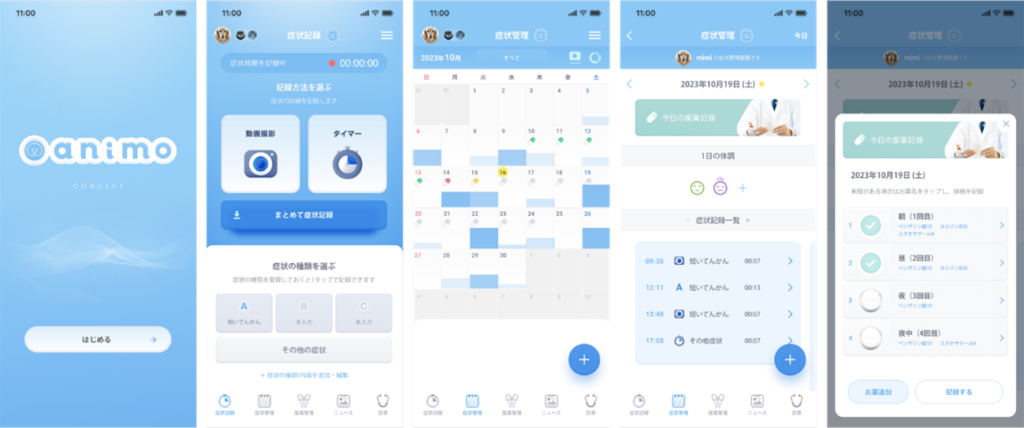 animoは非常に簡単な操作で日常生活下や症状発現時の状況(動画、画像、症状記録、服薬記録、生活イベントなど)を記録することが可能であり、かかりつけ医は遠隔の専門医にもそれらの記録を飼い主の同意のもとで共有したうえで相談や診察を受けることが可能です。アプリおよびサービスの開発を進めるにあたっては、日常の症状記録や専門的な知識を有する獣医師との繋がりが特に求められる領域の1つである“てんかん(神経病)“領域の専門科の視点でも診断や治療に必要な情報が記録されるものになります。animoアプリは、順次他の疾患領域にも展開していきます。