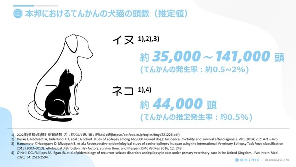 獣医療において、てんかんの犬猫はおよそ20万頭ほど(推定値)いると言われています。てんかん治療においては、オーナーの日常の記録がどれだけ正確に取得されているかが適切な診断や治療のために重要な要素となるとともに、それらの情報を適切にかかりつけ医や専門医に連携する仕組み作りが必要となります。ヒト医療のてんかん領域におけるシミックグループのノウハウを基盤として開発するシステムを、アニコムグループの持つペットオーナー、動物病院間のネットワークを活用して展開することで、本邦の獣医療におけるてんかん治療の発展を目指しています。