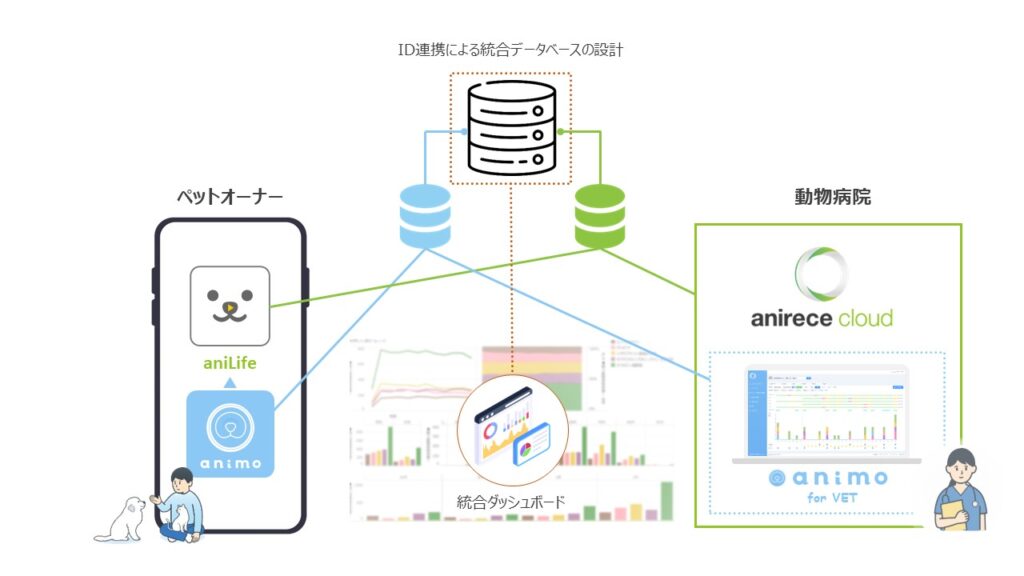 animoが開発中のanimo platform(animo owner appおよびanimo for VET)と、アニコムグループのアニコム パフェ株式会社(本社:東京都新宿区、代表取締役社長 安宅 快、以下 アニコム パフェ)が提供するアニレセクラウド等のシステム連携を通じてanimal-PHRとEHR/EMR連携を実現し、動物病院とペットオーナー間の円滑な情報共有による新たな診療体験の提供と、RWD活用の促進による個別医療の最適化を目指します。